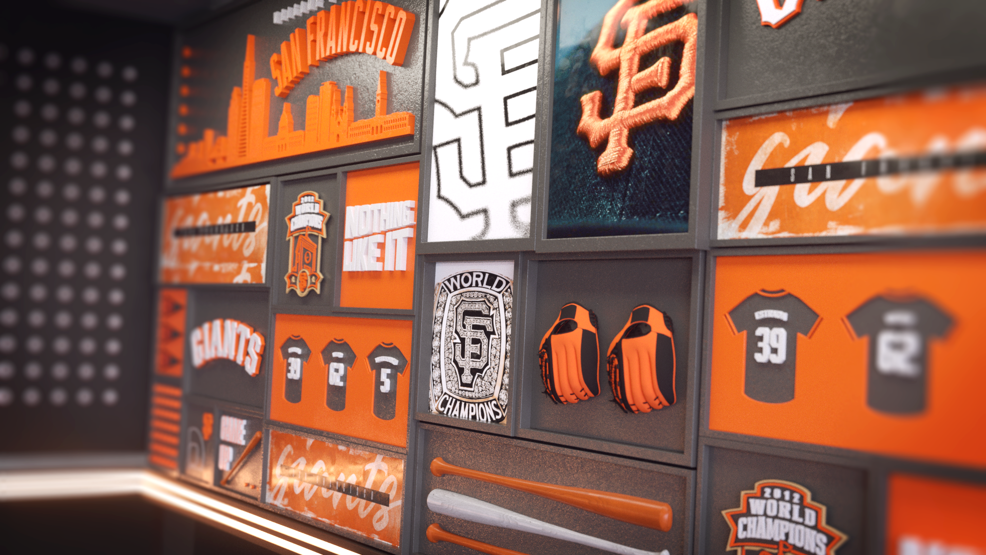 Sequência de frames para uma abertura da transmissão dos times de baseball da liga americana Major League Baseball, utilizando elementos do time, para a NBC TV Network.